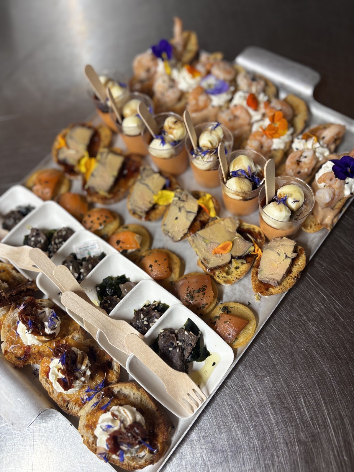 Le repas de mariage est construit autour de vos envies et du nombre de convives. Le cocktail met en valeur des bouchées élégantes et variées, idéales pour débuter la réception. Les plats principaux sont préparés à partir de produits de saison, cuisinés avec créativité pour offrir un mariage de saveurs unique. Chaque assiette reflète l’élégance et la convivialité d’un mariage de 50 personnes sur une péniche à Bordeaux.